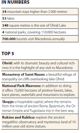 There is something mysterious in its mountain wilderness. It is a true paradise for all pristine nature lovers and a right place for researchers of ancient ruins. In addition to spectacular peaks, lakes and rivers and mystic monasteries its biggest feature is amazing hospitality and cordiality of its people which make the visit of this little country unforgettable. Macedonia wins you over for your whole life.