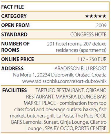 The Hotel does not have any serious weaknesses and convinces with comfort and quality as it befits hotels in the colours of the Radisson chain. If we used the automotive jargon, it is a premium hotel. If you wonder what we see under the term premium in this hotel, then this would be its rich and luxurious equipment, small details and above all the image of the brand. If you have ever organised a meeting in a hotel belonging to the Radisson Blu chain, then you can expect a similar experience in Dubrovnik. The Hotel is very suitable for incentive events, which seem to be taking place as if they were lined up on the conveyor belt at the Hotel’s Convention Centre.